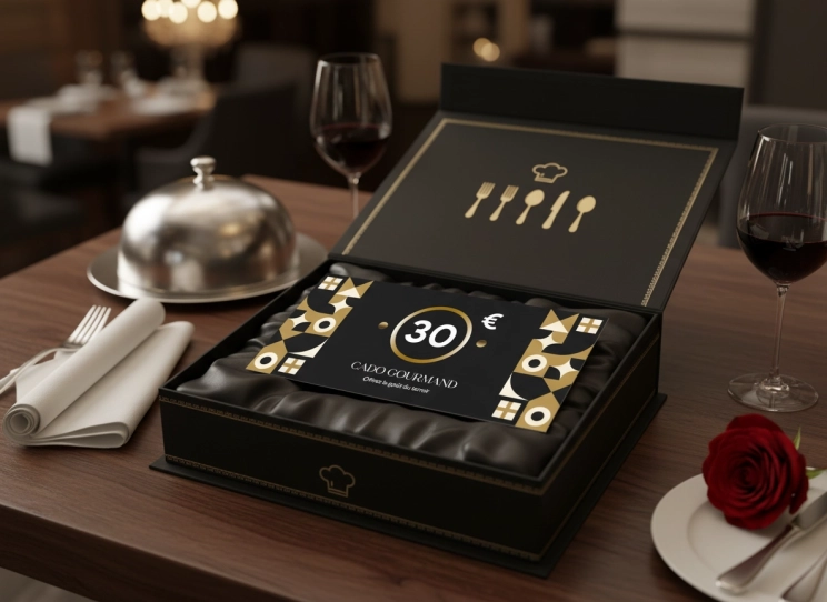 Le chèque Cado Gourmand 50 € permet de profiter d’un joli repas à deux au restaurant ou d’un coffret dégustation en boutique gourmande (caviste, épicerie fine, boucherie, fromager…). Idéal comme coffret cadeau gourmand local, valable 1 an (prolongeable si besoin), cumulable avec d’autres chèques, hors menus du jour et menus spéciaux.